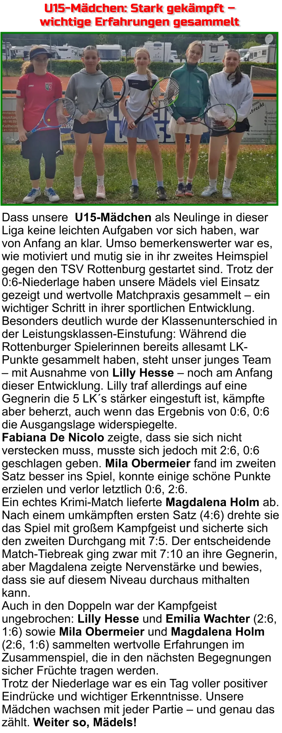 28.06. TC Abensberg - U15-Mädchen
