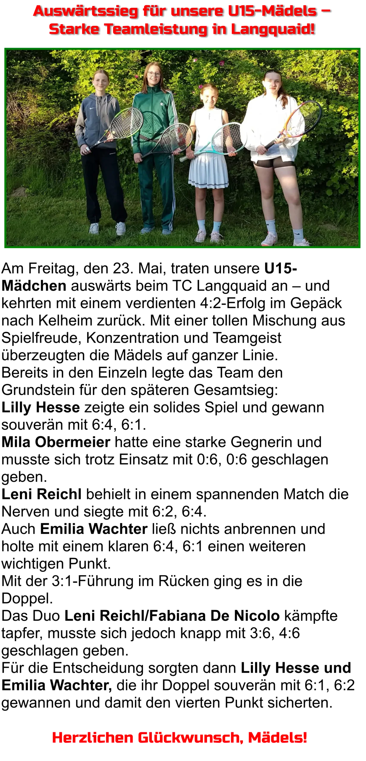 23.05. TC Langquaid - U15-Mädchen